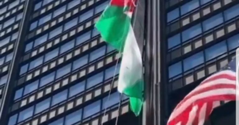 Anti-Israel Protesters Raise Palestinian Flag at Daley Plaza in Chicago Higher Than American Flag